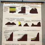 German, scientific, geological, educational, roll-up chart depicting ocean tidal erosion is printed on canvas backed paper with .75 inch diameter, painted wooden dowels with steel vertical hanging hook and wing-nut fastener and black cotton suspension string for hanging. Title translation: Changes to the Earth Surface Geology Chart