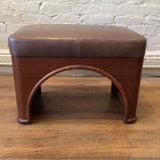 Vintage, art deco ottoman with arched walnut base and leather upholstered seat