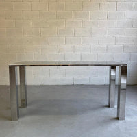 80's modern, chrome-plated, steel Parsons console table can also be used as a modernist desk.